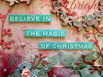 frames to accentuate the photo and title and lots of die cut leaves. Oh and did I mentioned that I sparkled all afternoon!